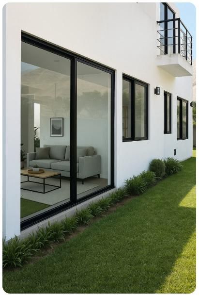 Serie 80 europeos, diseño moderno que se integra a la arquitectura actual de las edificaciones. Con atenuación acústica y deslizamiento silencioso. Aluminio, natural, negro y blanco.